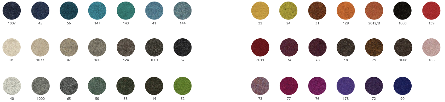 Flammability: the felt can be impregnated for an up-charge matching the EN 1101 1-2 standard