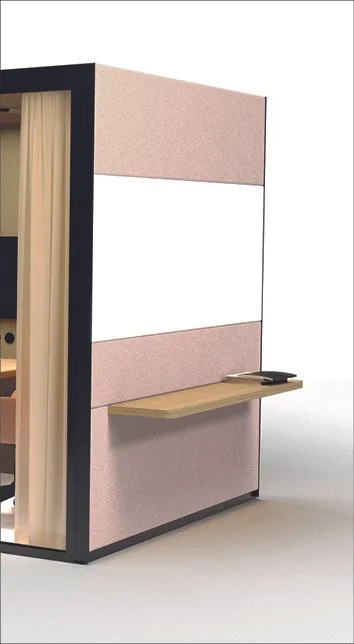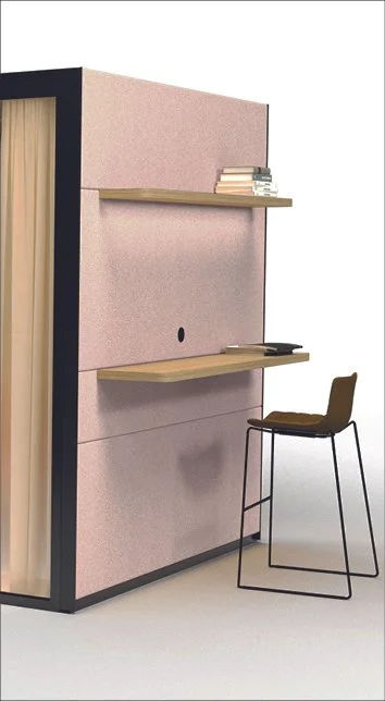 Mounted on the rear wall, this compact table transforms even the smallest Pod into a productive zone.