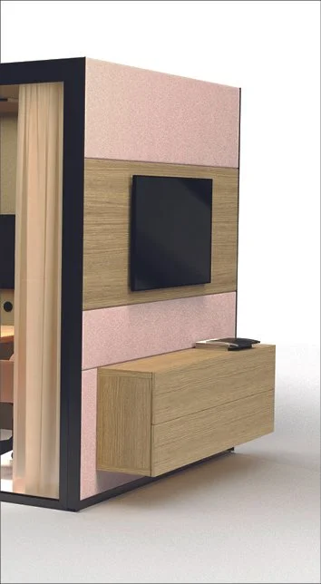 Mount a screen on the outside of your Pod for digital signage, live updates or hybrid meetings. Includes hidden cable routing for a clean and professional look.