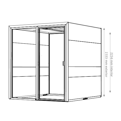 Equipped with automated LED lighting, dual ventilators for high-capacity airflow, and a primary 230V power connection with multifunctional sockets, this pod ensures lasting comfort throughout the workday. Optional integrated sockets in the upholstered side panel further enhance daily usability.
