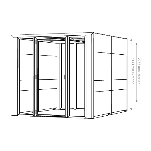 Inside, the pod supports both high and low table configurations, combined with bar stools, chairs, or integrated sofas depending on the meeting style. Pods of different depths can even be connected to match your layout perfectly. A reversible door hinge and optional second door ensure maximum accessibility.