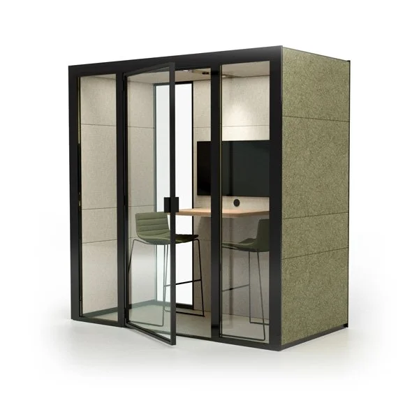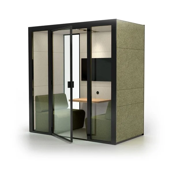 The Eco Meet S is a smart acoustic pod designed for 2 to 3 people, offering the perfect setting for quick meetings, brainstorming sessions, and confidential conversations. With its thoughtfully designed interior, this compact collaboration pod promotes focus, flow, and creative exchange even in the middle of a busy open-plan office.