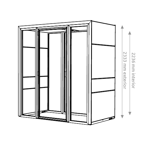 Power and connectivity are built in, with integrated HDMI, USB, and DATA ports alongside standard and optional power sockets. The triple-glazed transparent rear panel creates a bright, open feeling while maintaining acoustic isolation. Motion-sensor-controlled ventilation and LED lighting keep the space fresh, quiet, and well-lit throughout the meeting.