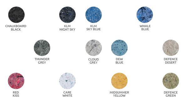 A range of felt made of recycled textile offer 9 different unique colorful textures that can be combined with these fabrics or laminates.
